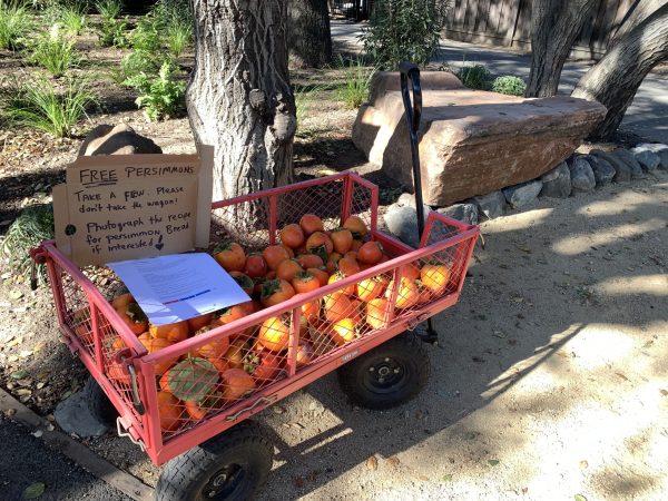 Menlo Oaks resident Judy Horst spotted this neighborly display when out walking. Persimmons are one of the signs of fall, but what can you do with them? The person offering these suggests making persimmon bread!