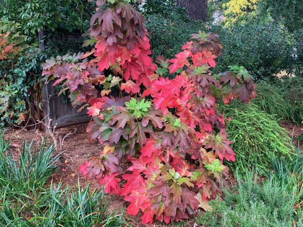 The bush is an oak leaf hydrangea