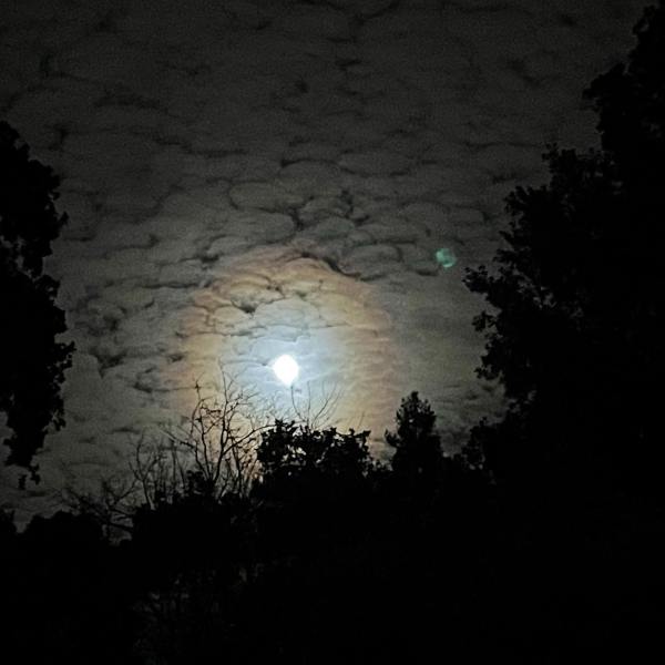 Atherton resident Laura Daschbach Pitchford captured this pretty picture of the pink moon dancing with some clouds. Here’s some background about the pink moon, according to NASA: