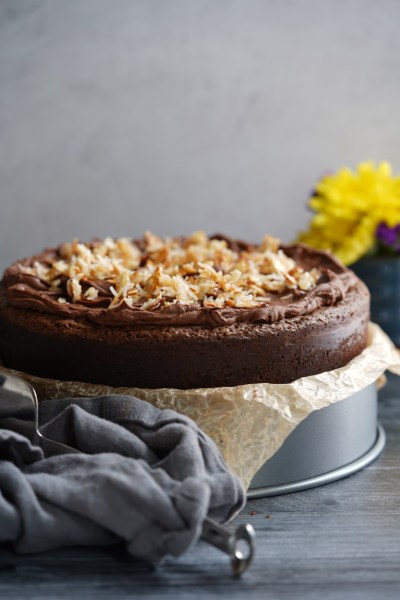 This cake is truly a chocolate lovers dream. I say that because you have a moist chocolate, coconut, almond cake, with a rich, chocolate ganache frosting, topped with, wait for it…toasted coconut-almond clusters. I mean, what could be better than this? This cake is killer and what I’ll be making for Valentine’s Day this year. But what’s also wonderful about this cake is that it qualifies as Passover friendly. Yes, it’s true. So, if you also happen to be Jewish, you can thank me for that little bonus as well.