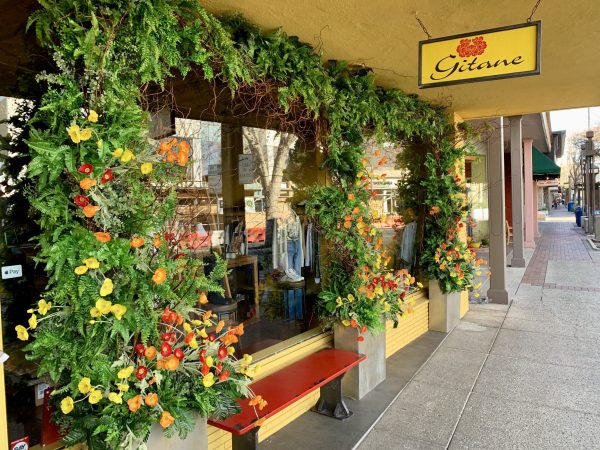 Following her terrific holiday window, Gitane owner Malika has brought spring to downtown Menlo Park with her latest window display. A bit of cheer on these chilly days of winter!