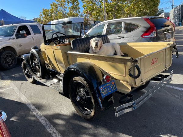 InMenlo contributing photographer snapped this photo of a cool as a cucumber dog waiting patiently in a class Ford truck near the Menlo Park Farmers Market this morning.