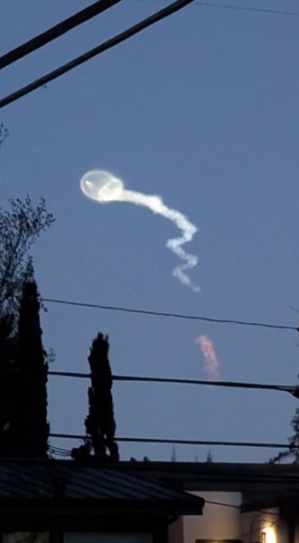 Emails Bill Wohler: “My eye caught an unusual jellyfish-like cloud on my walk home from the train station last night, which I guessed was a rocket launch from Vandenberg.