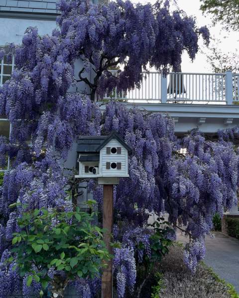 Spotted: Wisteria framed bird house in Atherton