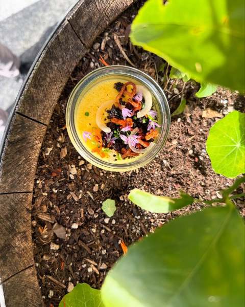 We first spotted this photo posted by Flea Street owner Jesse Cool on Facebook: “Join us on Earth Day with our newest dish — Stand Up for Soil: shallot custard | edible dirt.”