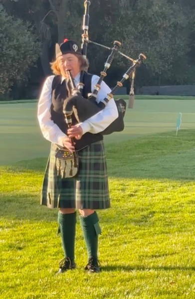 Golfers teeing off this morning at the Stanford Golf Course were musically accompanied by a bagpiper in a nod to St. Patrick’s Day.